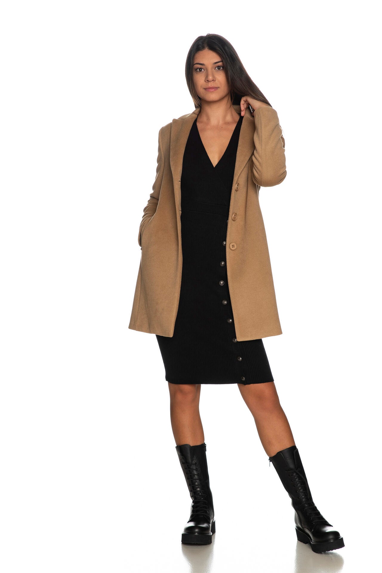 Cappotto corto Please da donna in panno stretch di misto poliestere e viscosa, modello monopetto a tre bottoni, con fodera a contrasto colore, revers classici e tasche laterali a filo con micro monogramma in metallo cucito a lato