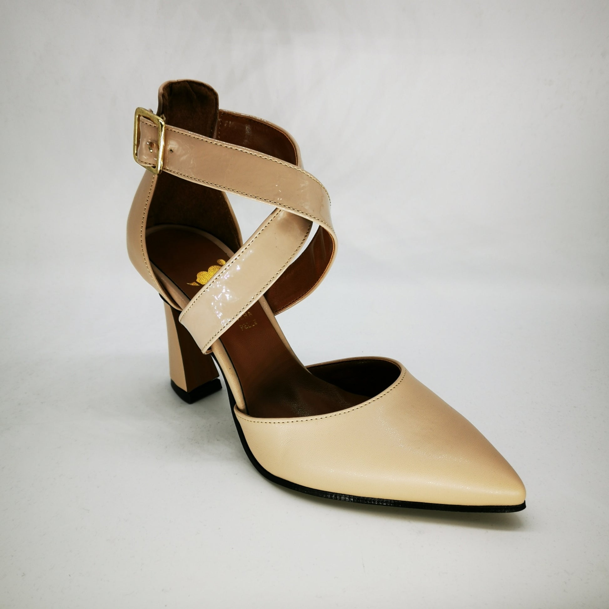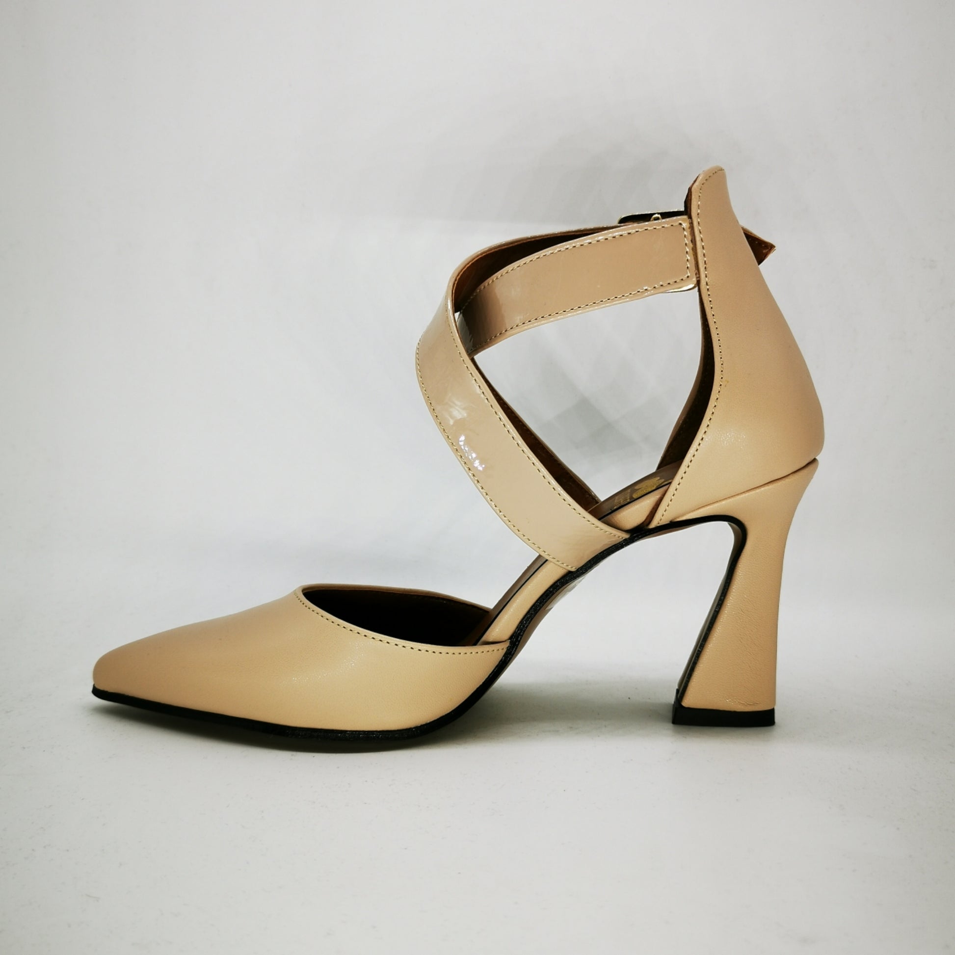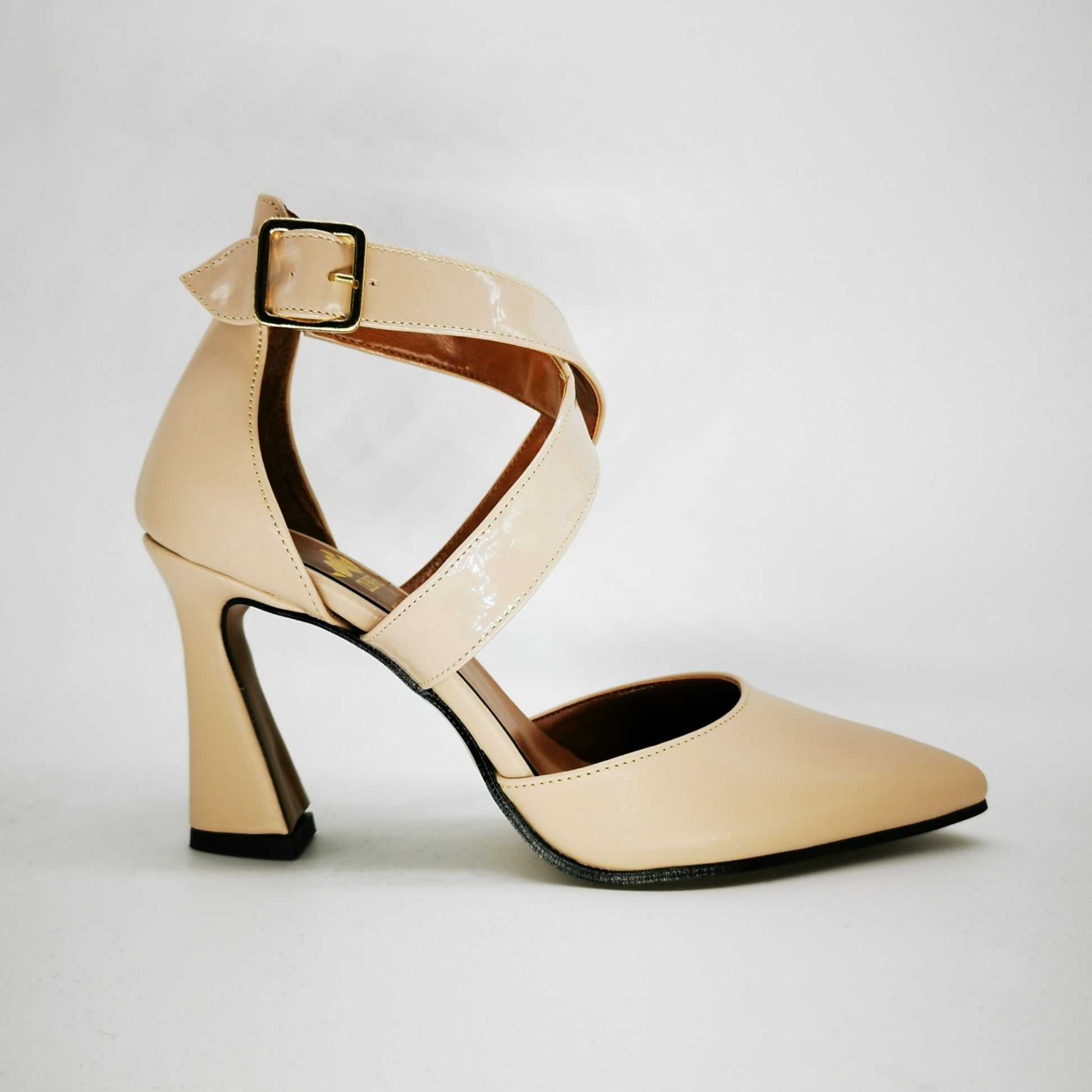 Decolletè a punta e tallone con cinturino ad incrocio sul collo del piede