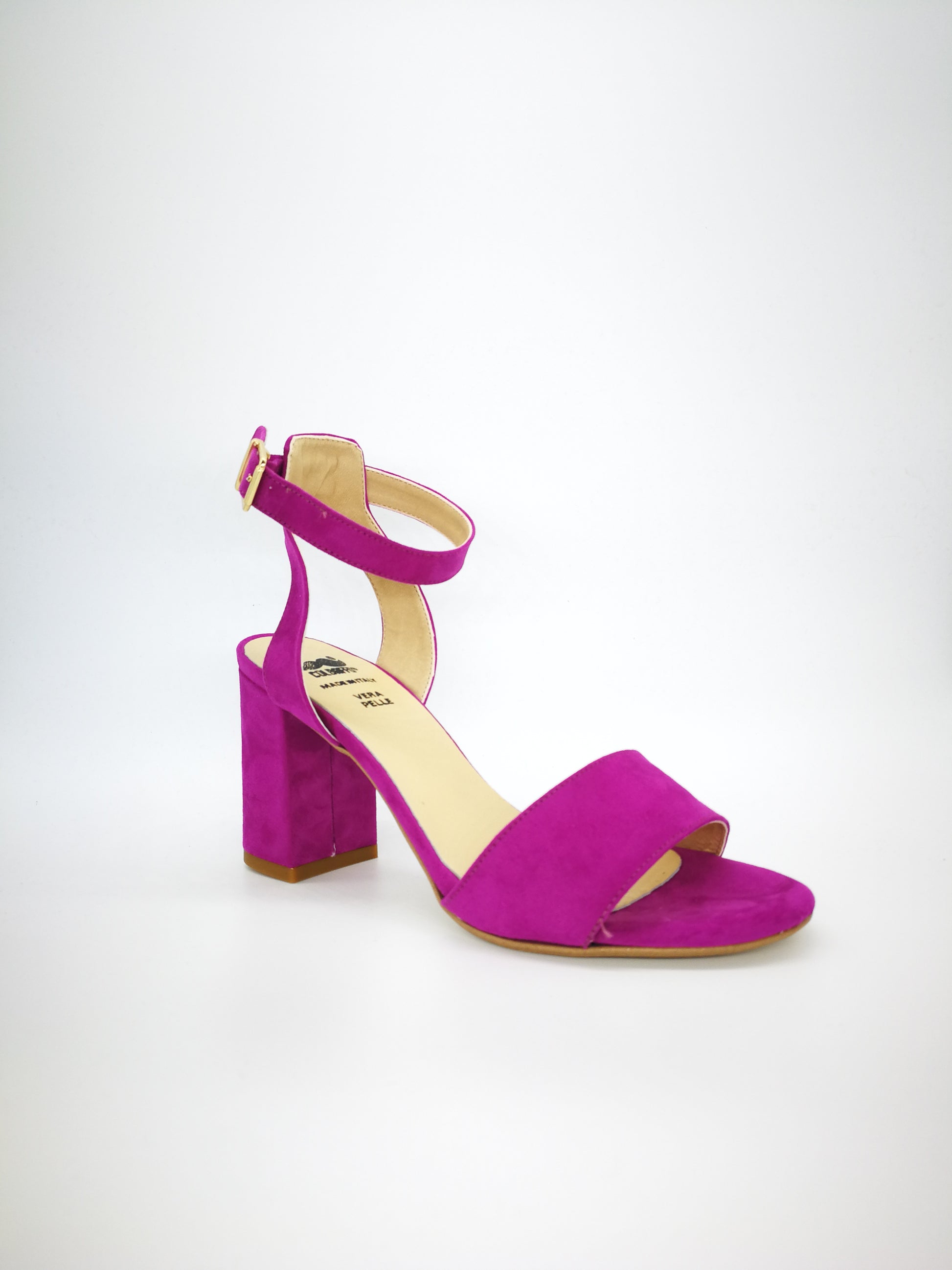 Sandali allacciatura a braccialetto, tacco 70, tomaia in camoscio e interno vera pelle. 100% Made in Italy, produzione artigianale esclusiva Colbaffo®